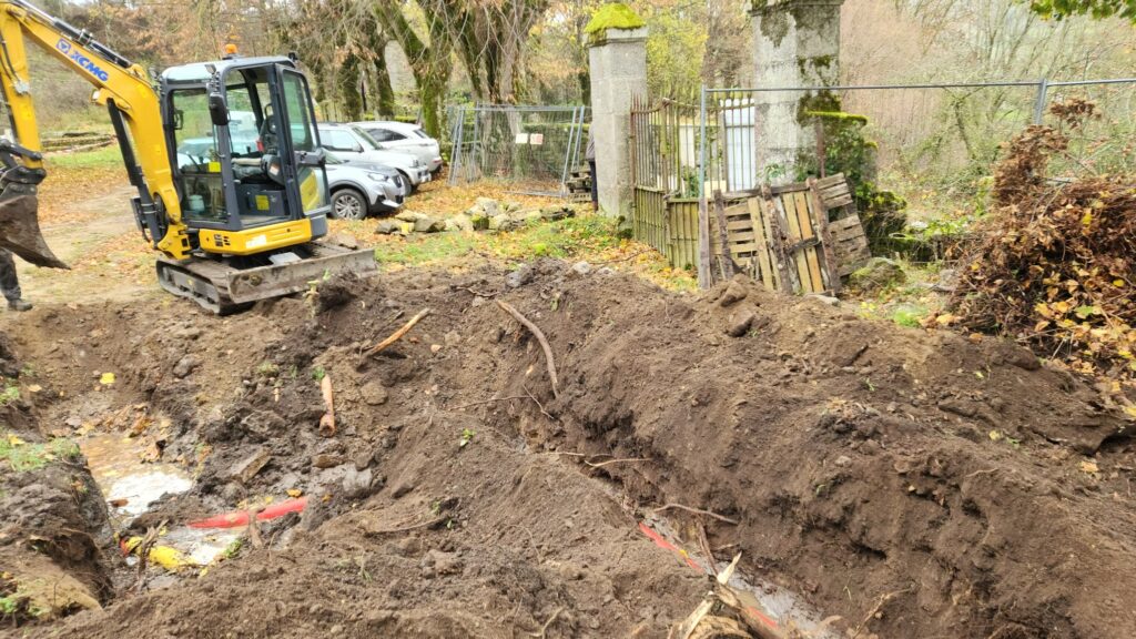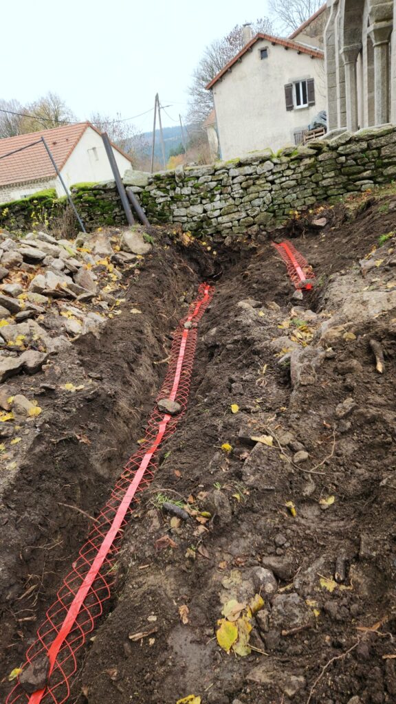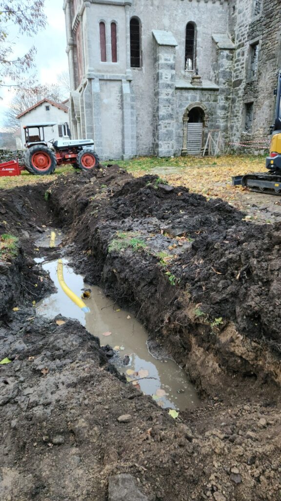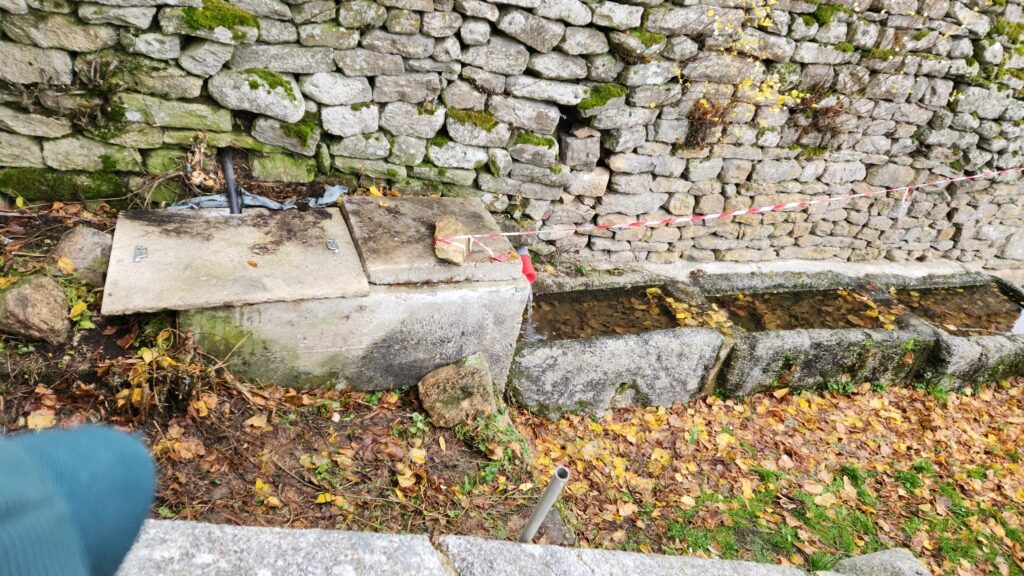 Les 14 et 15 novembre 2025, nous avons remplacé la canalisation percée et bouchée de la fontaine, avec l’aide de la mairie de Saint-Flour de Mercoire.